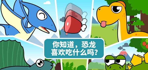 3、使用食物与恐龙互动了解不同恐龙的习性特点,观察食肉恐龙和食草恐龙在饮食偏好上的明显区别,掌握基础的古生物知识。