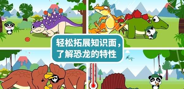 2、提供多种恐龙角色互动帮助孩子了解不同恐龙的特性差异,通过对比观察发现每种恐龙的独特之处,拓展知识面。