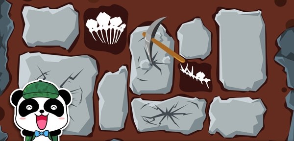 1、使用铲子等工具在沙地中挖掘寻找隐藏的恐龙化石,注意控制力度避免损坏脆弱的化石标本,培养细心和耐心。