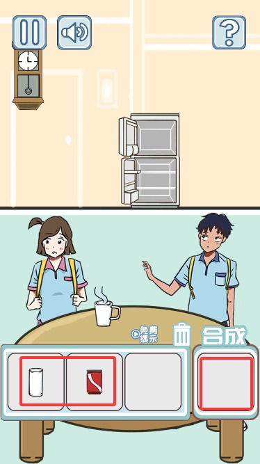 4、将杯子与可乐拖入合成框制作暖心组合,成功交付即可提升好感度通关。