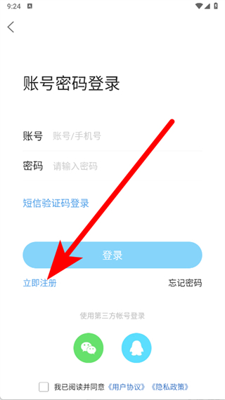 3、在登录界面里,点击立即注册,进入注册流程。