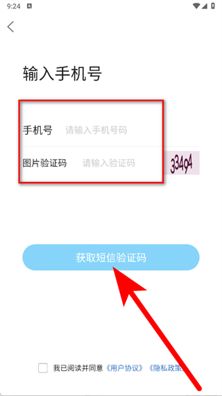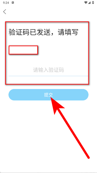 5、待收到短信验证码后,将其填入对应框内,点击提交,完成注册登录。