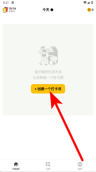 1、打开小日常,点击页面中间的+创建一个打卡项。