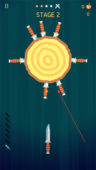 3、STAGE2木盘有飞刀,瞄准空隙发射,让飞刀成功插入。
