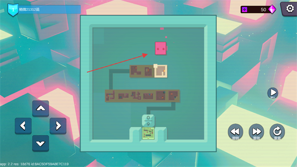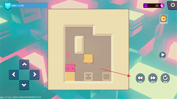 1、观察地图,操控角色移动,靠近粉色方块准备推动。