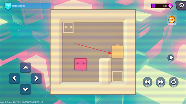 2、推动粉色方块,朝黄色方块方向移动,避开障碍。
