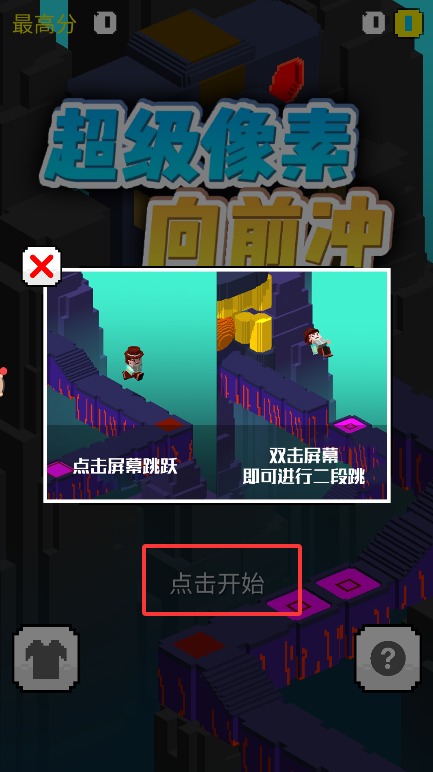 1、启动游戏后点击开始按钮,即可进入这款复古像素风格的跑酷挑战世界。