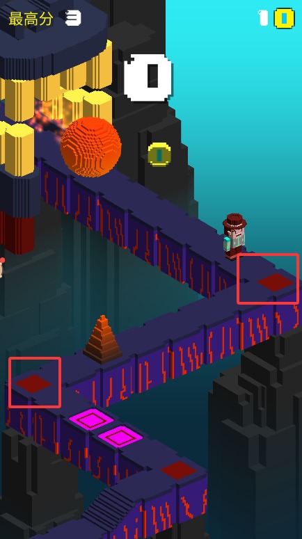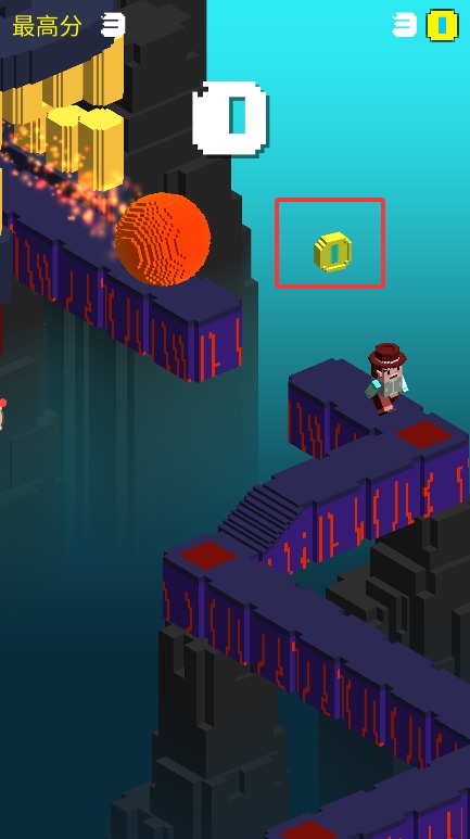 2、玩家需要集中自己的高度注意力,让角色可以始终顺利奔跑,尽量远离巨型球体,冒险生存很长的时间。