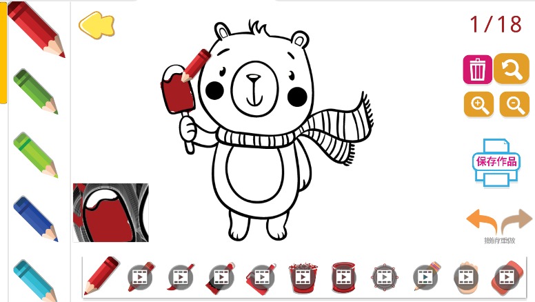 3、在左侧调色板选取合适颜色,使用手指在屏幕上直接进行填色与细节绘制。