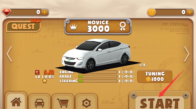 1、启动游戏后从车库中选择心仪车辆型号,确认选择后点击开始游戏进入驾驶界面。
