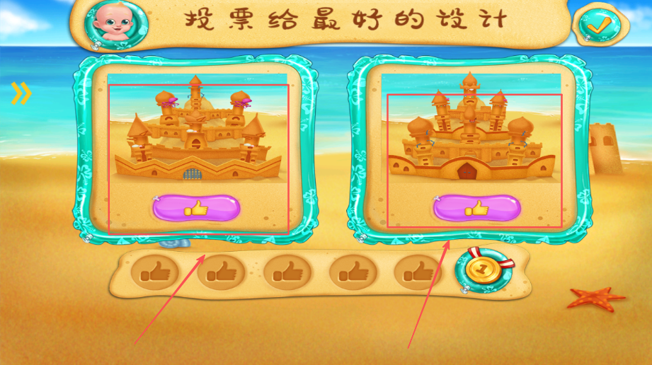1、创意沙堡建造环节,使用不同工具堆砌沙雕,参加竞赛获得成就,还可以参观其他玩家的优秀作品。