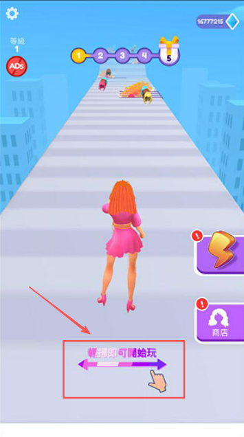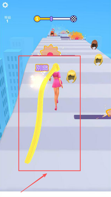 5、然后我们点击并按住屏幕,这样可以放下我们的长发,这么做的目的是为了计算通关后的奖励。