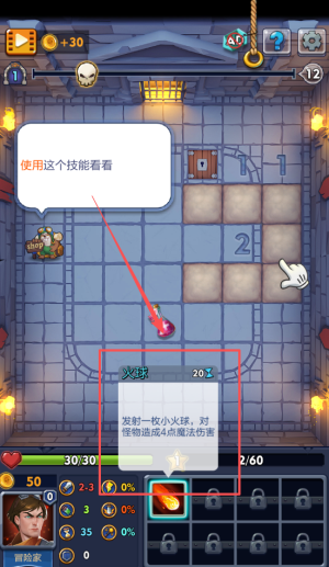 2、地牢中散布各种道具如儒风长皮鞭或托月重脑棍玩家可收集并用于增强英雄能力,通过击败怪物或开启宝箱获取奖励学习新技能每项技能。