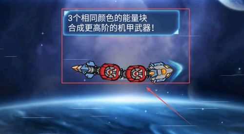 1、合成机制作为游戏基础,需要玩家将获得的能量块置入机甲指定槽位,每三个相同颜色的能量块即可合成更高阶的武器。