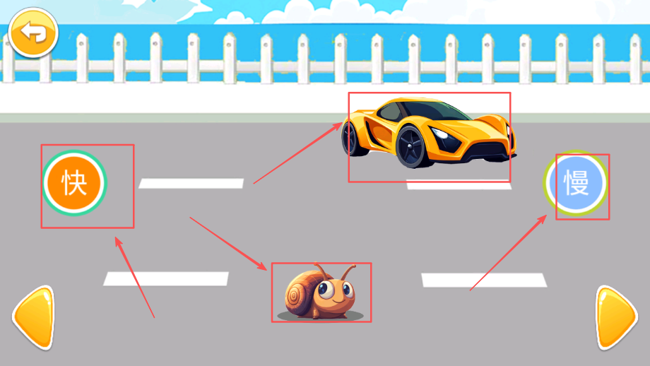 2、在每个精心设计的互动场景中仔细观察不同物体的特征对比,通过触摸屏幕触发有趣的动画效果来加深对反义词的理解。
