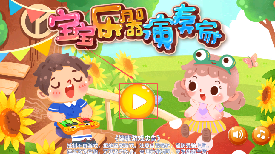 1、进入游戏选择乐器,了解每种乐器的基本演奏方法,培养乐器认知和选择能力,建立音乐兴趣。