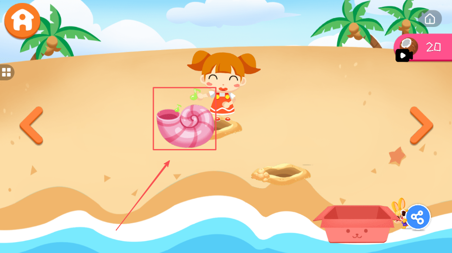 1、自由探索沙滩别墅环境,与各个场景中的元素进行互动发现乐趣,培养主动探索精神,提升观察力。