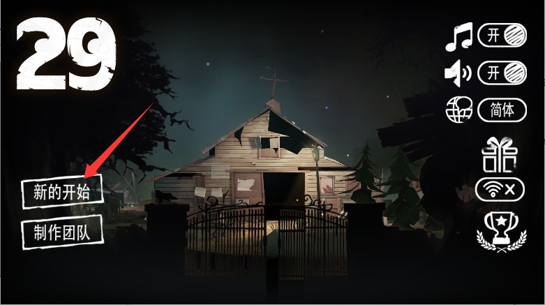 1、启动游戏后点击新的开始按钮,即可进入这场为期29天的生存挑战旅程。
