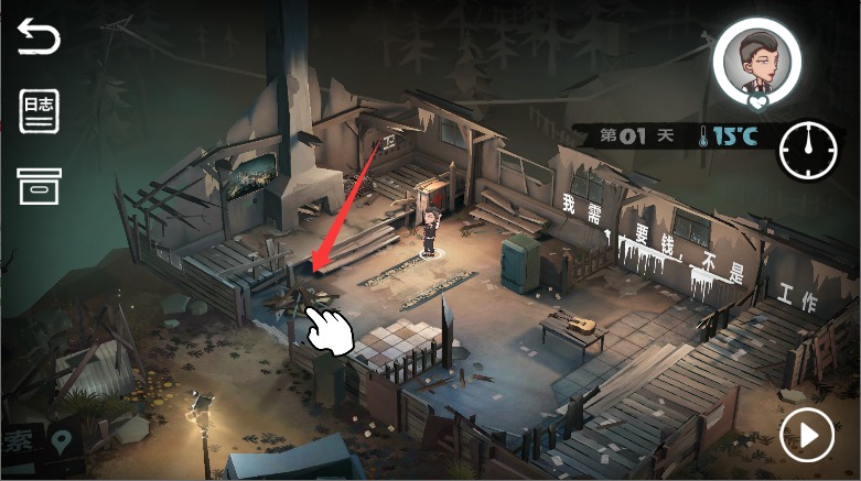 3、点击场景中破损的工作台进行交互,查看修复所需的具体材料与工具清单。