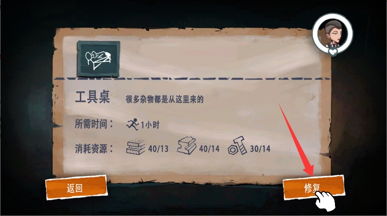 4、集齐所有必要资源后点击修复按钮,将工作台恢复至可正常使用的状态。