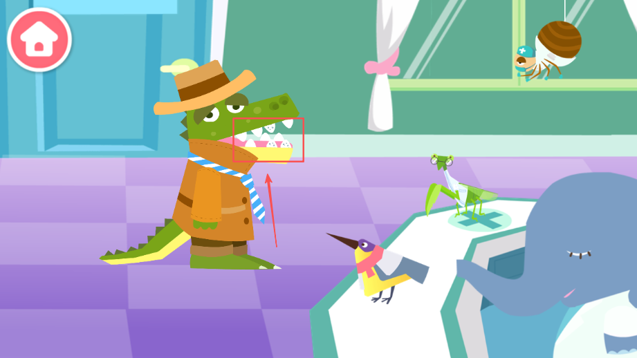 2、作为小牙医需要使用各种特制的卡通工具为前来就诊的小动物患者进行全面的口腔检查和牙齿问题诊断。