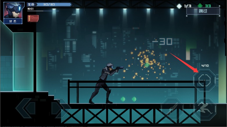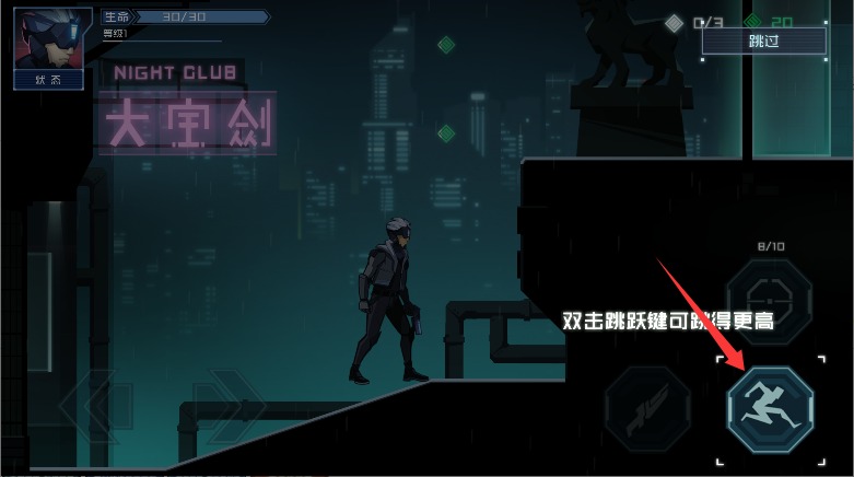 2、点击右下角跳跃按钮完成基础跳跃,快速双击可实现二段跳跨越更高障碍。