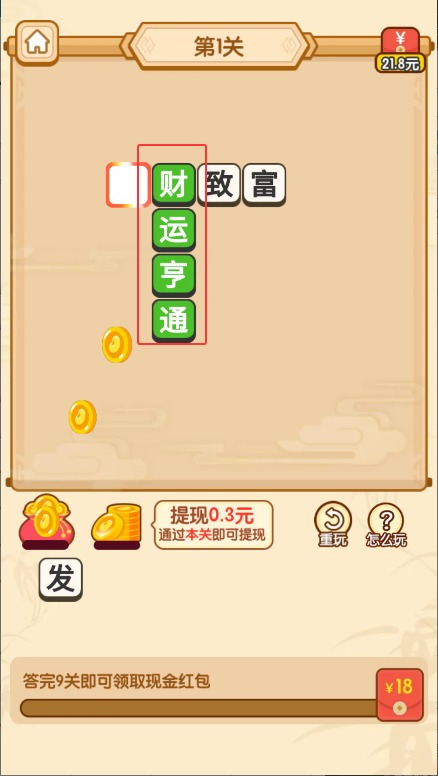 掌上秀才游戏挺有意思,既能学成语还能赚点零花钱。玩法就是填成语闯关,过一关就能拿红包。赚的钱可以直接提到微信钱包,不过要注意看清楚每关的提现规则。题目难度慢慢增加,玩着玩着就能记住不少新成语。适合闲着时候玩两把,既打发时间又能学知识。