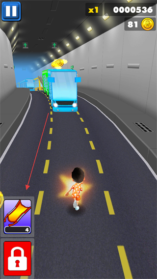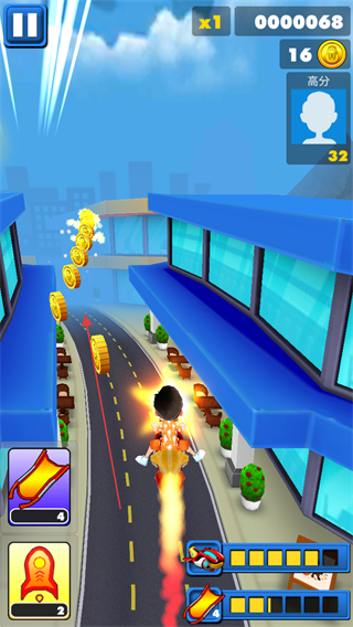 2、在奔跑过程中,注意收集道路上的金币,同时留意上方显示的分数和高分记录。
