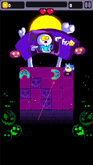 2、在移动过程中,避开砖块,按箭头引导寻找并收集关卡中的特殊道具,如带有图案的砖块道具。