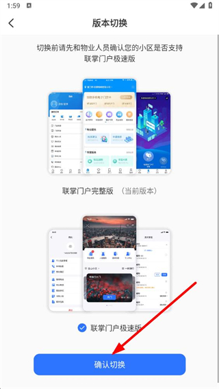 3、在版本切换页面,点击确认切换按钮。