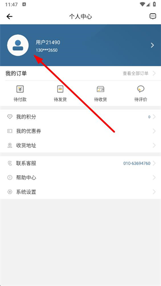 2、在个人中心页面,点击用户头像区域,进入个人信息页面。