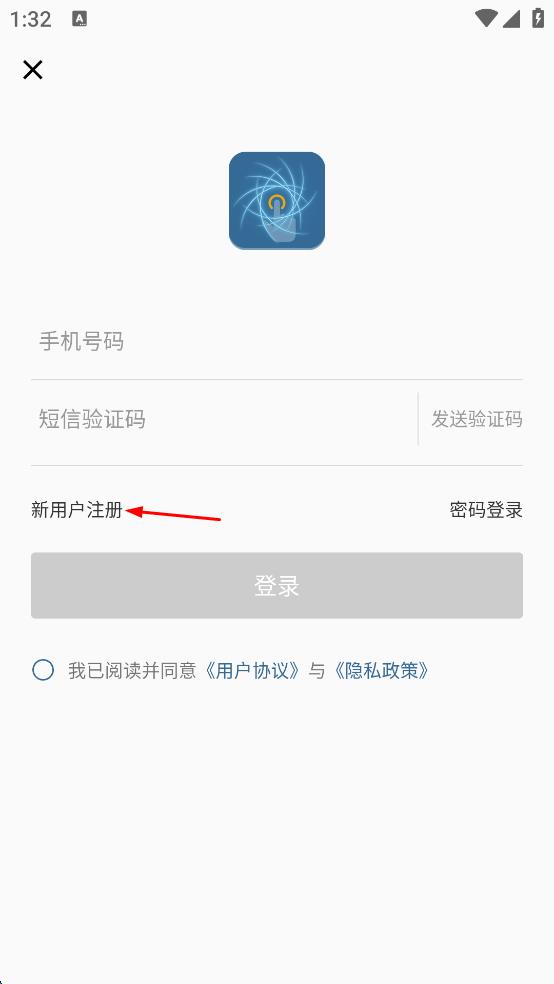 2、在登录注册页面,找到新用户注册选项,点击该选项,进入注册页面。
