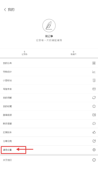 2、在我的页面,选择通用设置选项,进入通用设置界面。