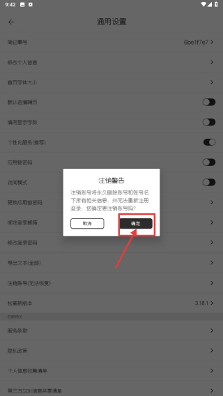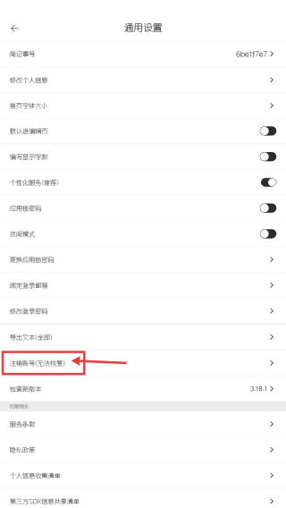 3、在通用设置界面,点击注销账号无法恢复选项,弹出注销警告框。