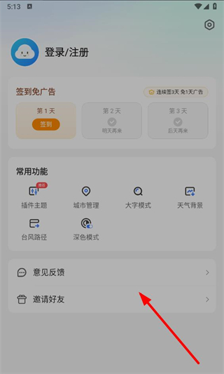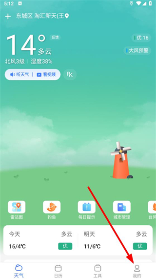 1、打开手机天气预报app,点击底部导航栏中的我的选项。