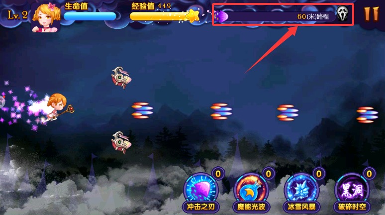 3、通过左右滑动屏幕控制移动方向,角色会自动对沿途敌人发动魔法攻击。
