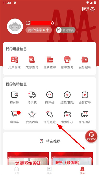 2、在个人页面中,找到浏览足迹选项并点击进入浏览足迹界面。