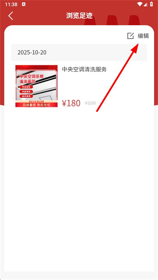 3、在浏览足迹界面中,点击右上角的编辑按钮。