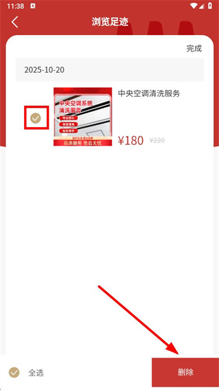 4、勾选要删除的浏览记录,然后点击右下角的删除按钮即可删除浏览记录。
