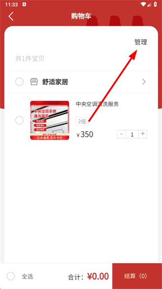 3、在购物车界面中,点击右上角的管理按钮。