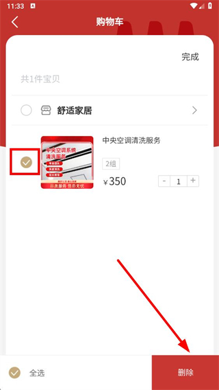 4、勾选要删除的商品,然后点击右下角的删除按钮即可删除购物车商品。