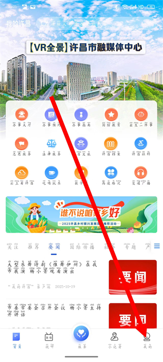 1、打开我的许昌,点击底部导航栏最右侧的我的。