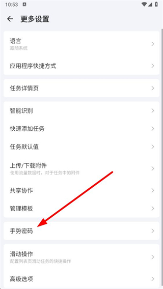 2、在更多设置页面中,找到手势密码选项并点击进入。