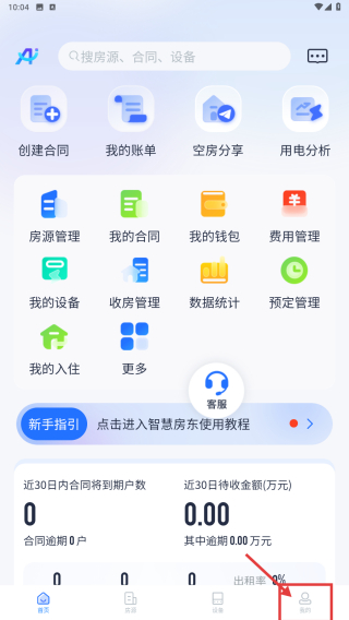 1、打开租房管理类应用,点击底部我的选项,进入个人中心页面。