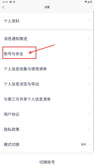 3、在设置界面,点击账号与安全选项,进入账号与安全页面。