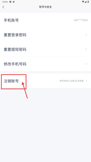 4、在账号与安全页面,点击注销账号选项,提交账号注销申请。