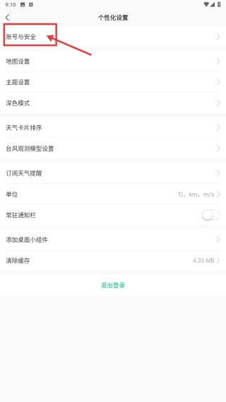 3、在个性化设置界面,点击账号与安全选项,进入账号与安全页面。