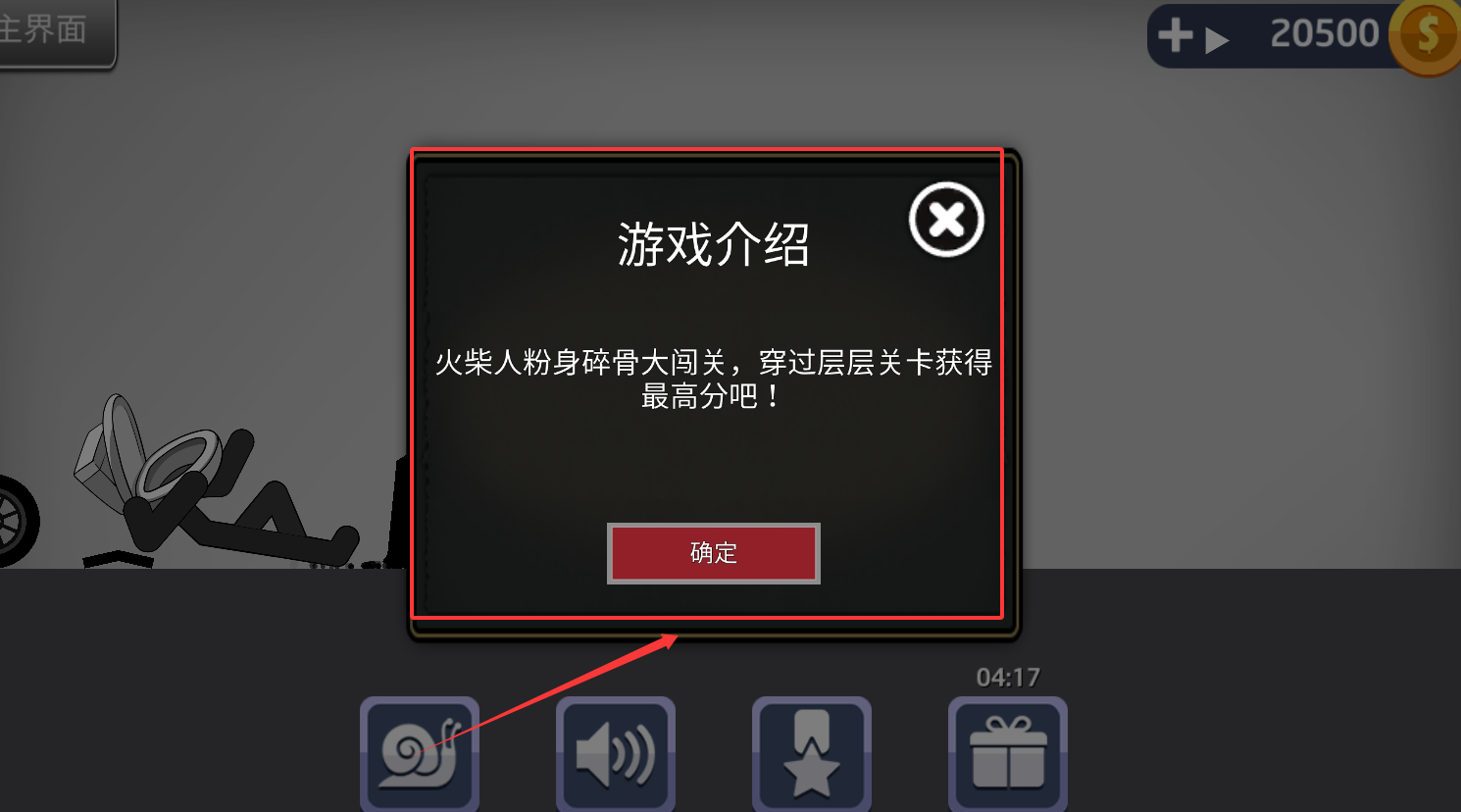 1、进入游戏后首先完成新手引导掌握基本操作技巧,随后开启关卡模式逐步挑战任务目标,通过精准撞击火柴人获取初始金币奖励。