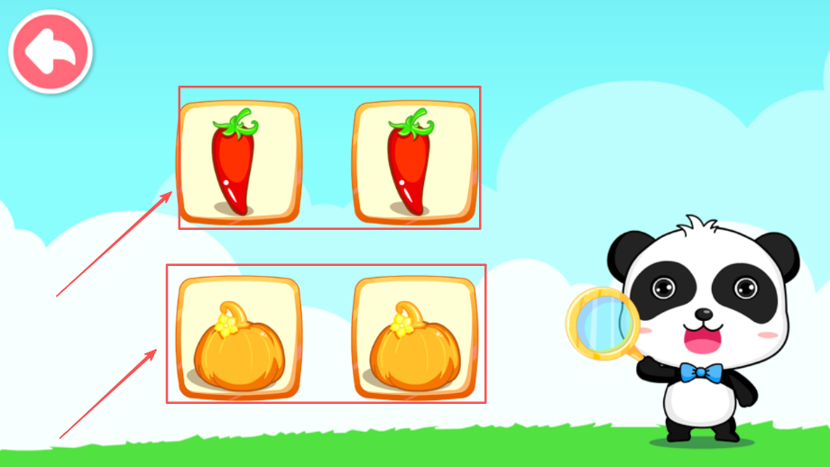 3、配对游戏锻炼观察分辨能力,要求快速准确地找出相同蔬菜进行匹配,提升反应速度和判断力。