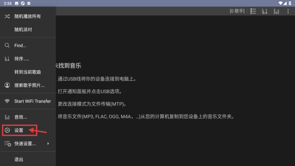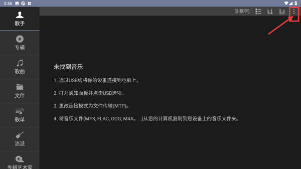 1、打开音乐类应用,点击右上角菜单按钮,展开功能菜单。